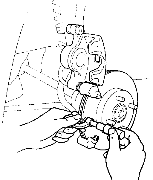 2. Move the caliper and pads out of the way as described in the preceding column.