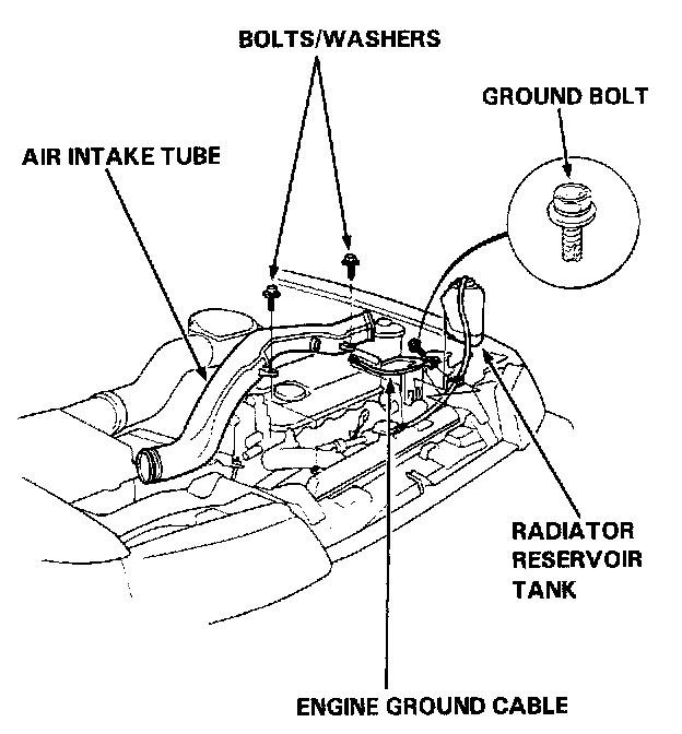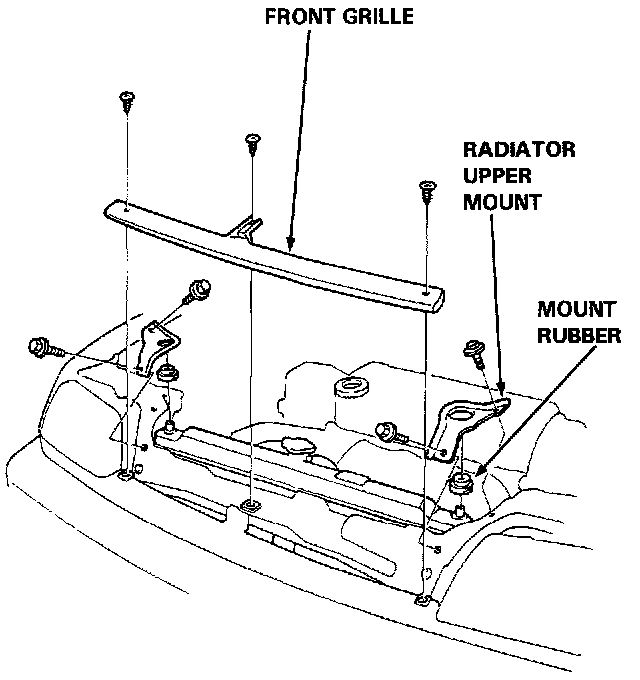 5. Remove the front grille with three screws and radiator upper mounts with two bolts each.