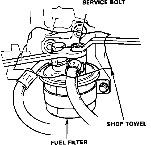 WARNING: Do not smoke while working on the fuel system. Keep open flame away from your work area. Make sure the engine is OFF before relieving fuel pressure.1. Place a shop towel under and around the fuel filter.