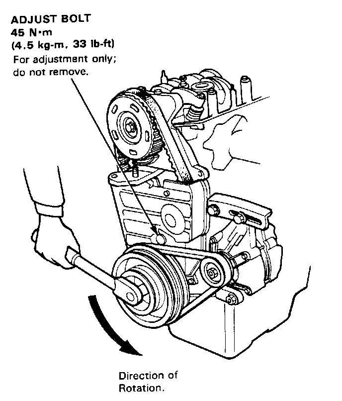 9. Loosen the adjust bolt, then remove the timing belt.