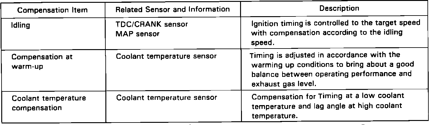 Ignition timing is fixed at 6° BTDC for cranking. The cranking is detected by the TDC/CRANK sensor (cranking revolution) and starter signal.