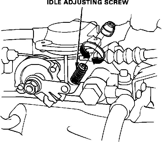Adjust the idle speed, if necessary, by turning the idle speed adjusting screw.