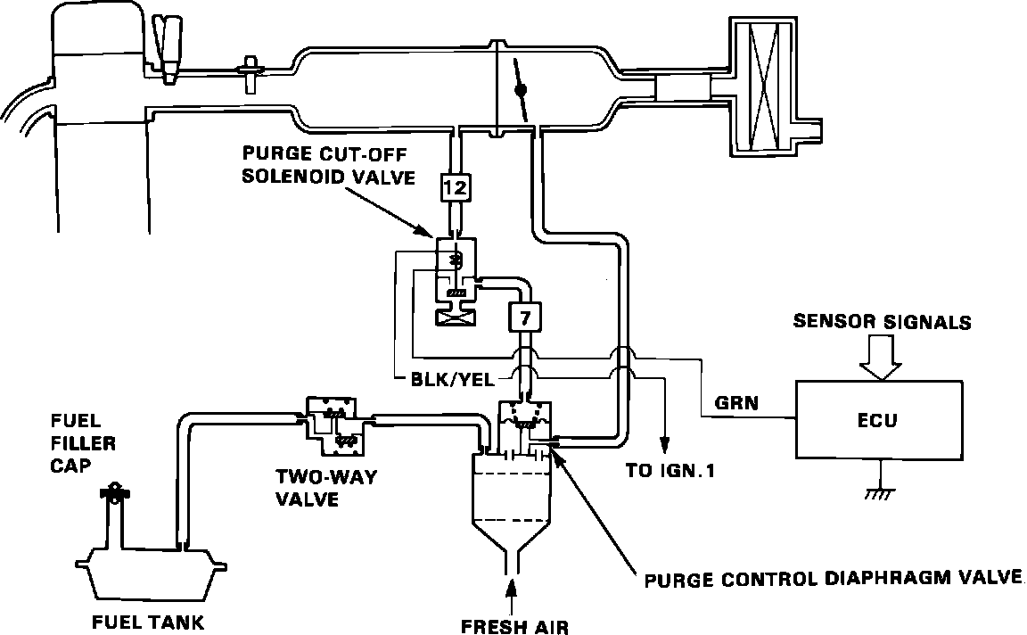 2. Remove vapor line from the fuel tank and connect a vacuum/pressure gauge and pump via a T-fitting.