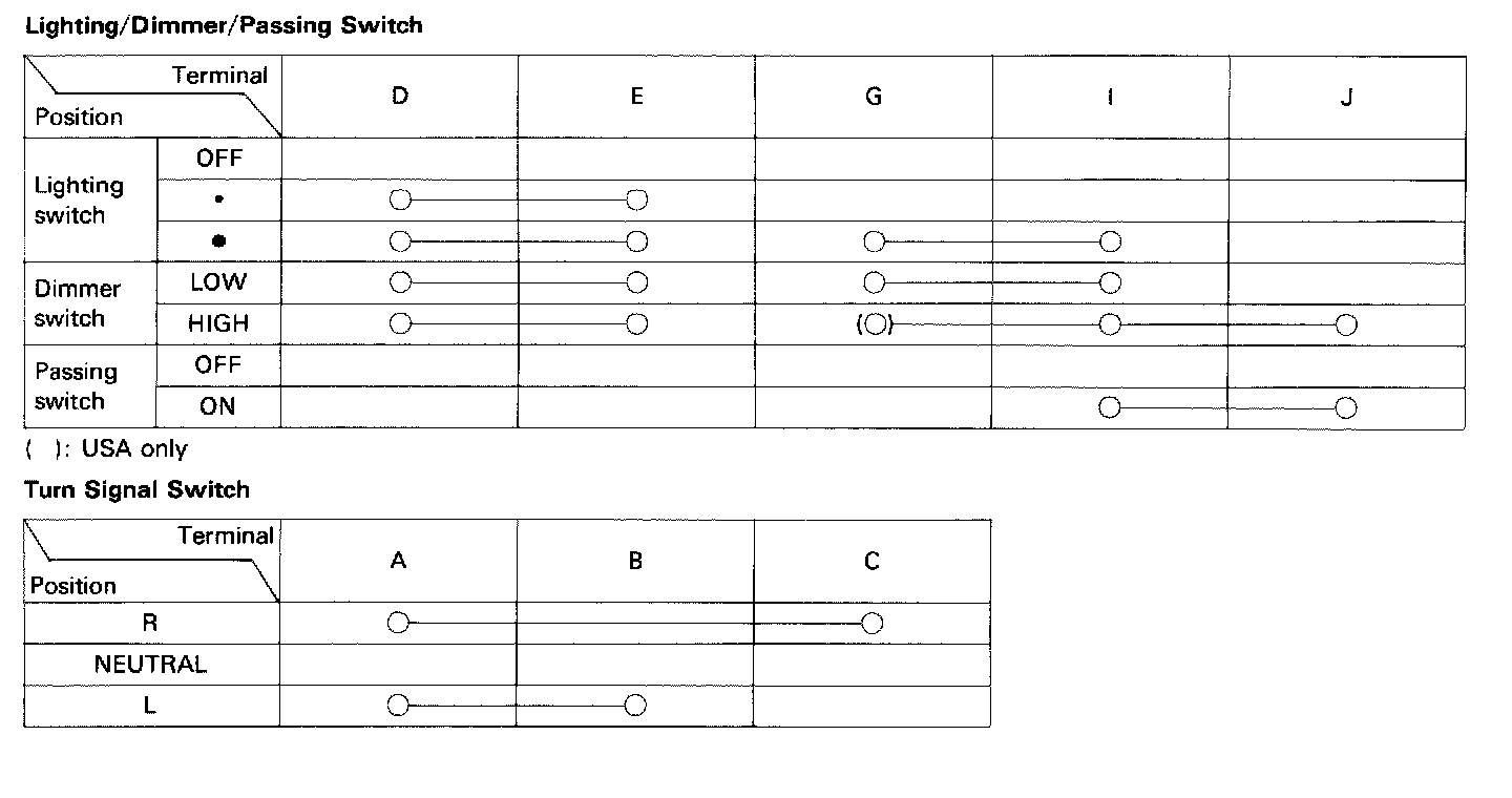 3. Check for continuity between the terminals in each switch position according to the tables.