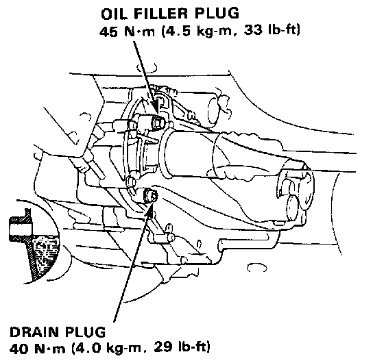 2. Remove the oil filler plug, then remove the drain plug and drain transmission