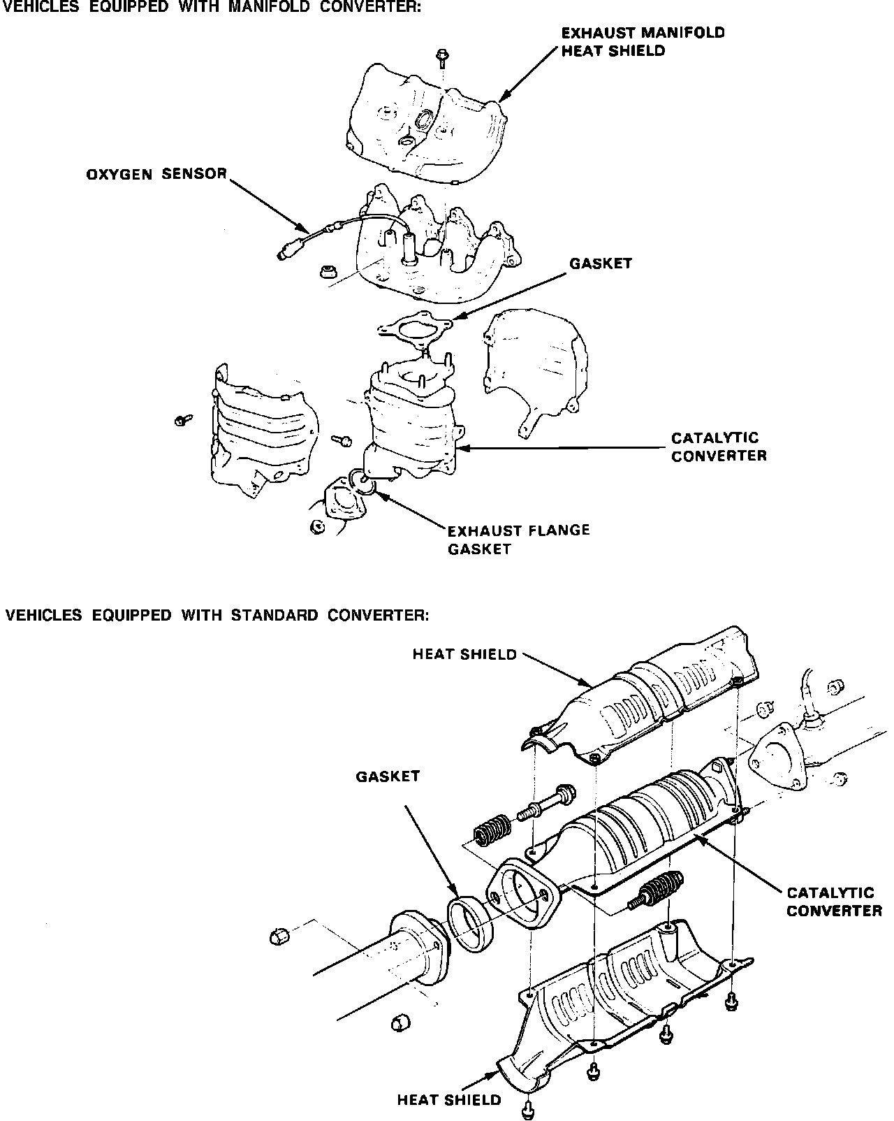 If excessive exhaust system back-pressure is suspected or if tail-pipe emissions are too high (while all other systems check OK), remove the catalytic converter from the car and make a visual check for plugging, melting or cracking of the ceramic grid inside. If any of the visible areas are damaged, replace the catalytic converter.
