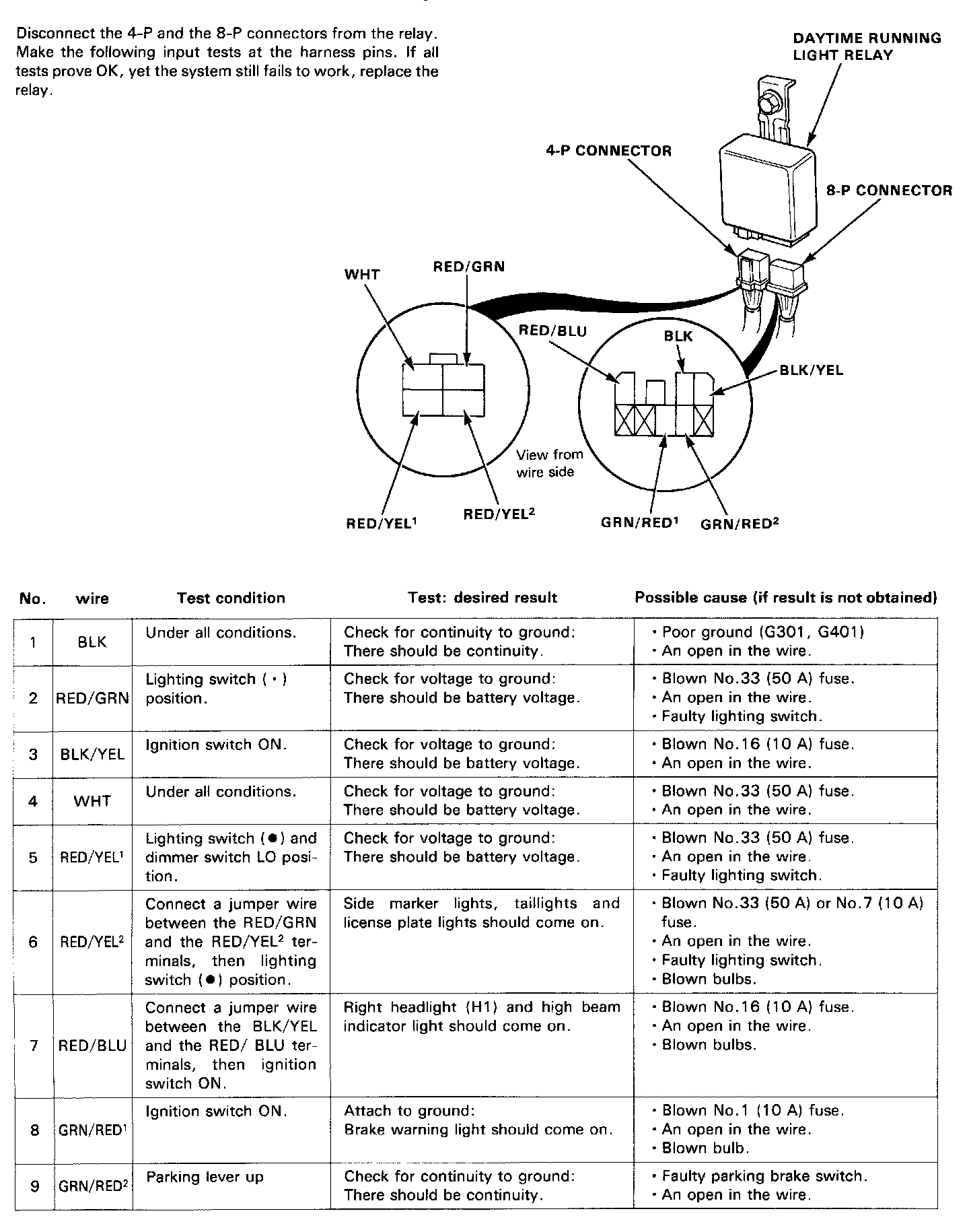Daytime Running Lamp Control Unit: Testing and Inspection