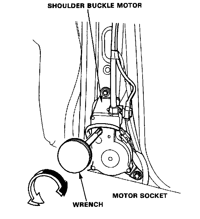 NOTE: Operate the shoulder buckle motor manually by inserting the wrench provided in the tool bag into the motor socket.