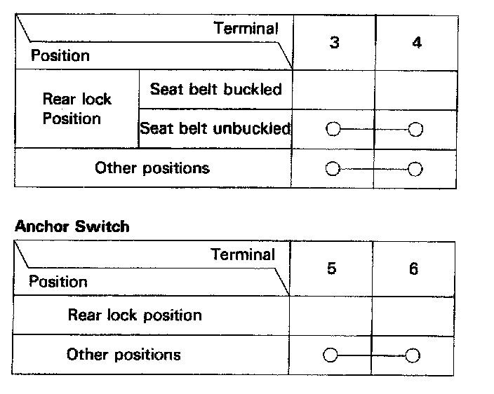 3. Check for continuity between the terminals in each buckle position according to the table.