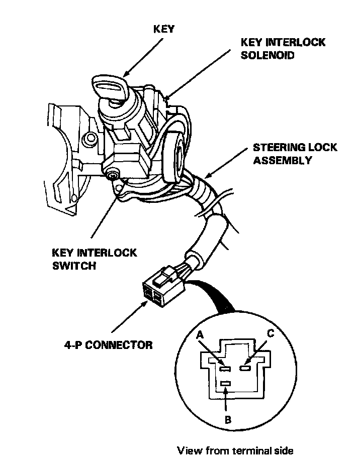 - If the key can be removed, replace the steering lock assembly (key interlock solenoid is not available separately).