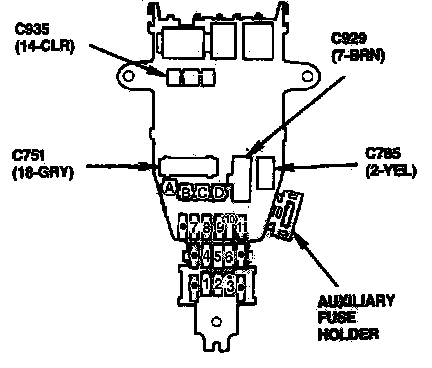 Front View Of Under-dash Fuse/Relay Box: