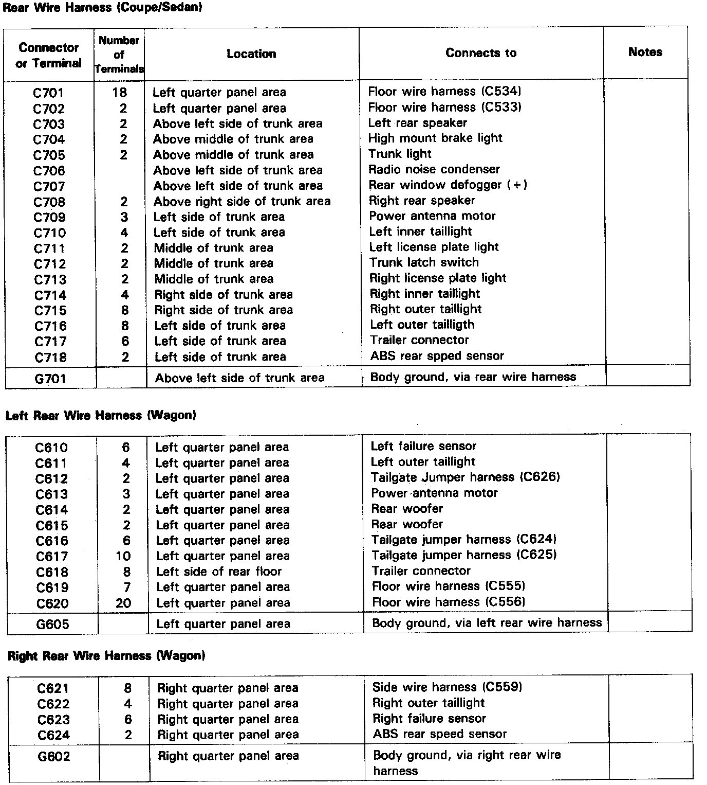 Rear Wire Harness (Coupe/Sedan/Wagon)