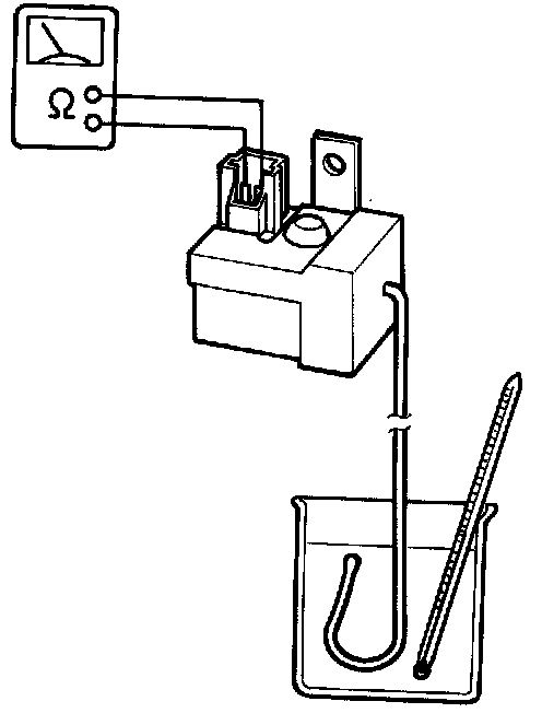 Dip A/C thermo switch into a pan filled with ice water, and check for continuity between the terminals.