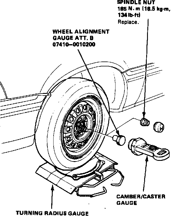 1. Raise front of vehicle and position turning radius gauges under front wheels, then lower vehicle.