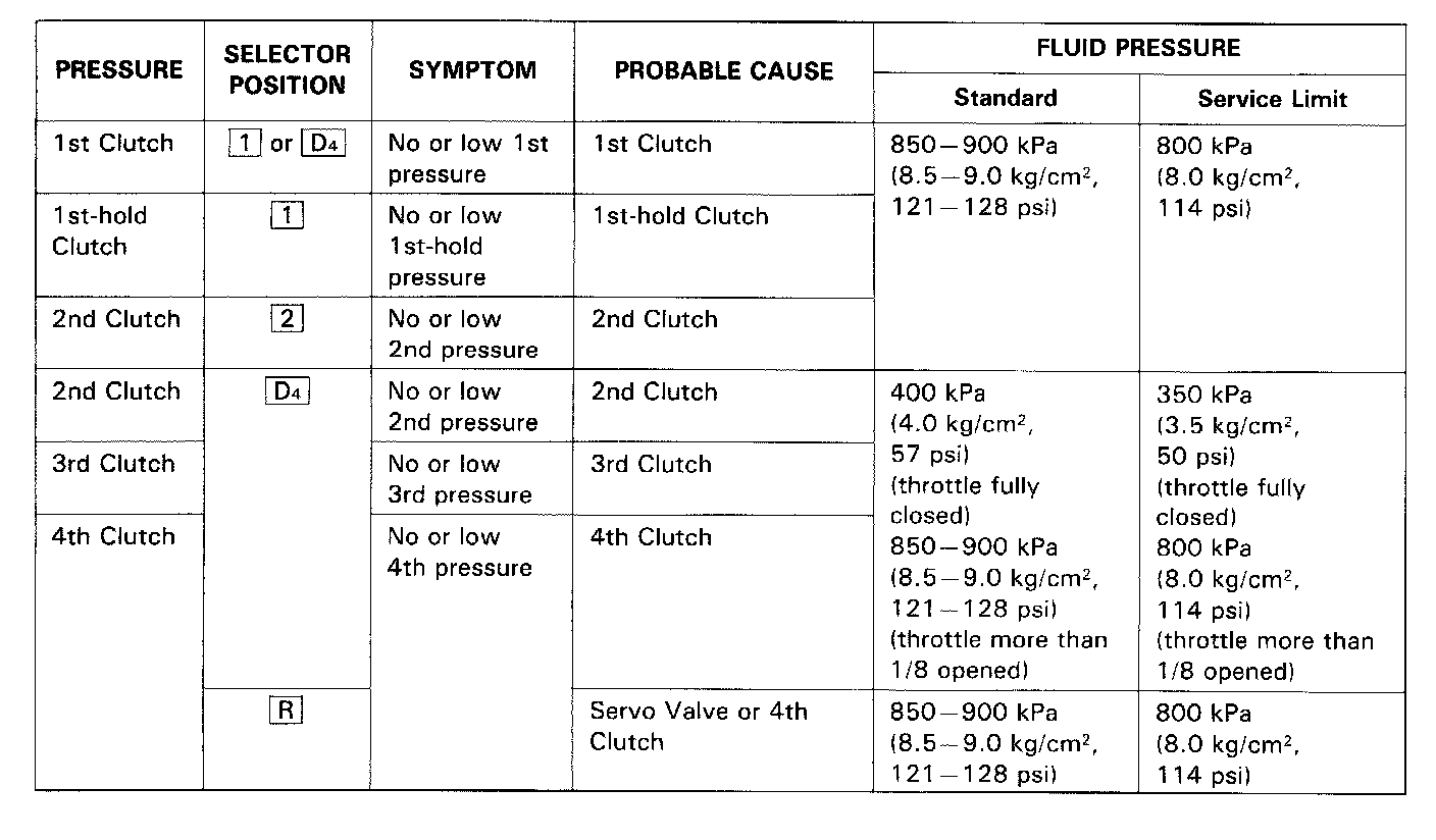 - 6.Repeat step 5 for each clutch pressure being inspected.