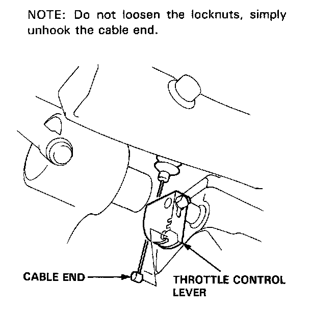 - 2. Remove the cable end of the throttle control cable trom the throttle control lever.