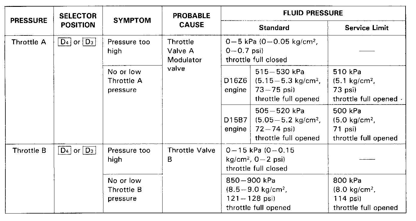 - Throttle A/Throttle B Pressure
