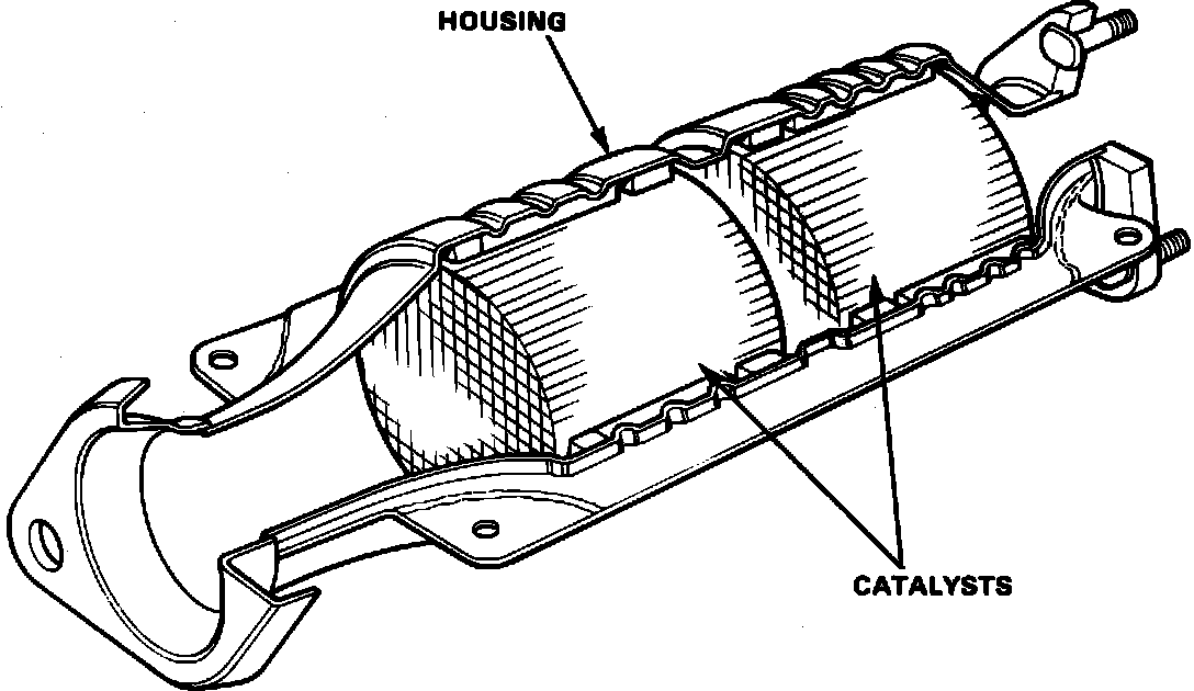 As the exhaust gasses containing HC and CO are passed through the converter in the presence of oxygen, the platinum catalyst starts the oxidation (burning) process. The HC and CO then unite with the oxygen to form water vapor and carbon dioxide. This oxidation process has no effect on the NOx emissions.
