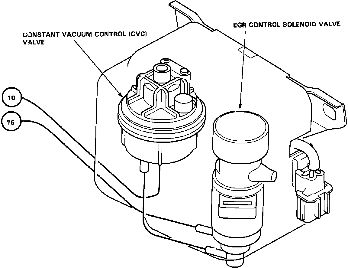 The EGR Control Solenoid Valve, mounted inside of the control box, is used to vary the amount of EGR valve lift. The ECU contains memories for ideal EGR valve lifts for varying operating conditions. The EGR valve lift sensor detects the amount of EGR valve lift and sends the information to the ECU. The ECU then compares it with the ideal EGR valve lift which is determined by signals sent from the other sensors. If there is any difference between the two, the ECU cuts current to the EGR Control Solenoid Valve to reduce vacuum applied to the EGR valve.