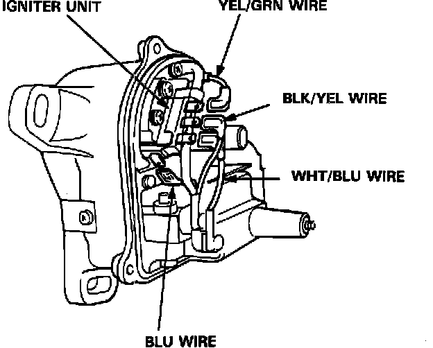 2. Disconnect the BLK/YEL, WHT/BLU, YEL/GRN and BLU wires from the igniter unit.