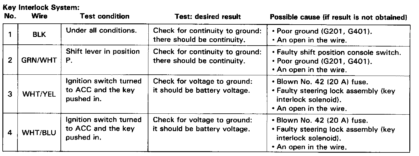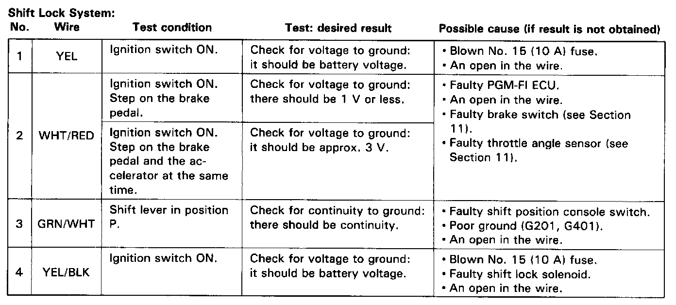 NOTE: If the shift lock solenoid clicks when the ignition switch is ON and the brake pedal is pushed (the shift lever is in the P position), the shift lock system is electronically normal.