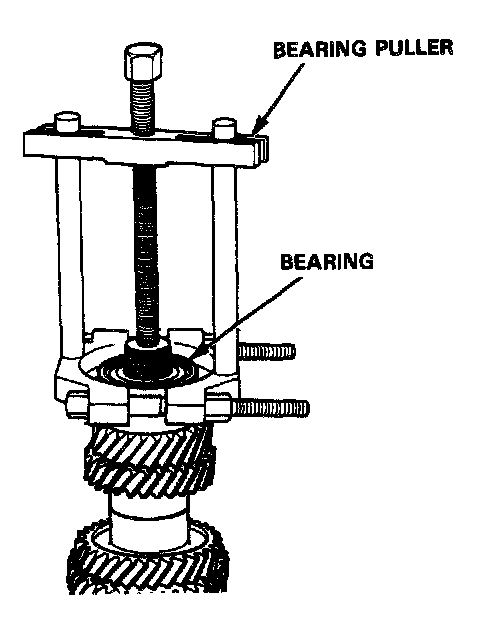 3. Support 4th gear on steel blocks as shown and press the shaft out of 5th and 4th gears.