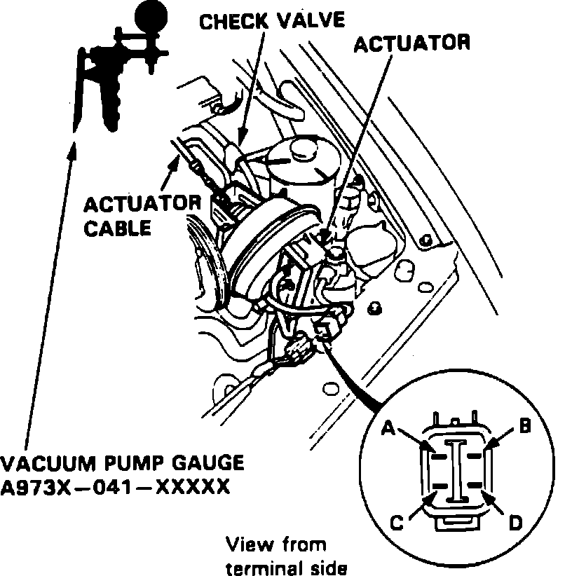 5. Actuator rod should pull in completely. If rod pulls in only part way or not at all, check for leaking vacuum line or defective solenoid.
