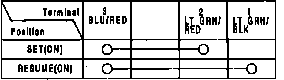 4. If continuity is as described in table, set/resume switch is functioning properly.