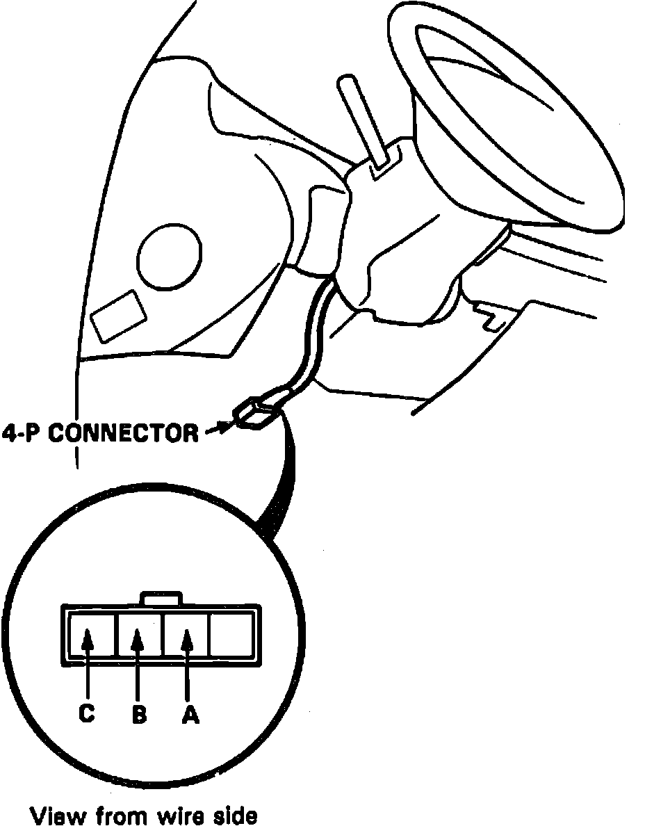 5. If no continuity exists, or continuity exists only in some positions, remove steering wheel and repeat step 3 using the 4-P connector of the steering wheel.