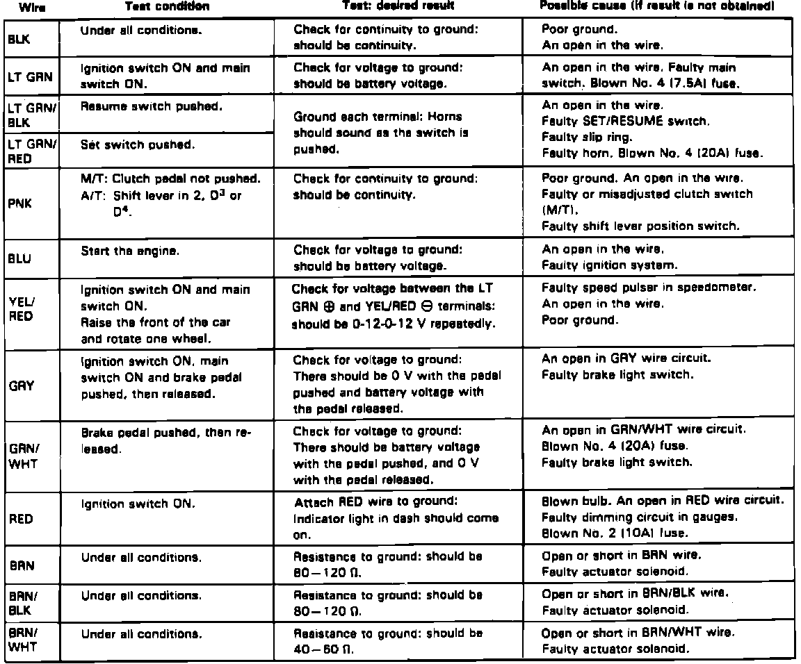 Fig. 26 Speed Control Unit Input Test Chart. Prelude: