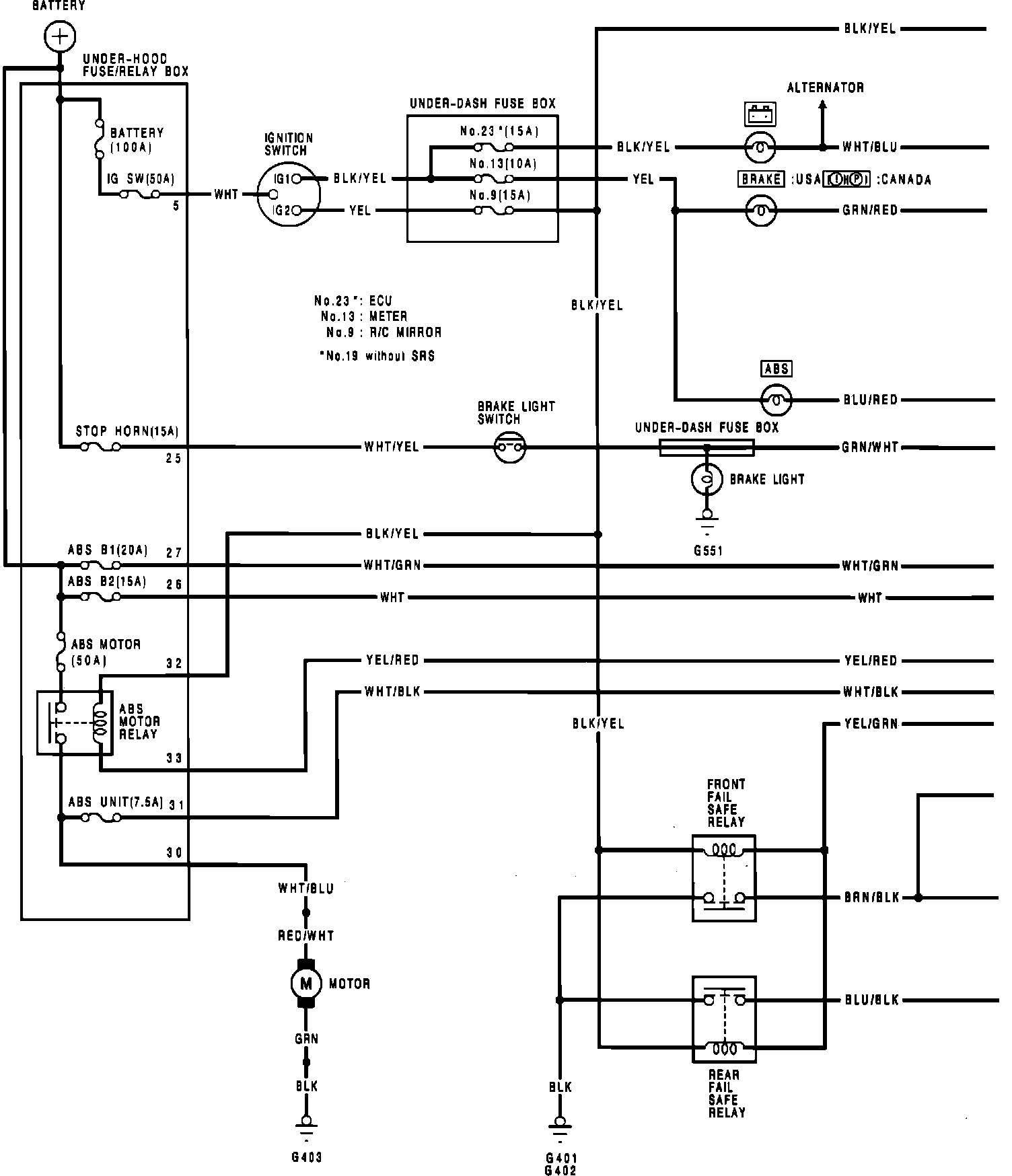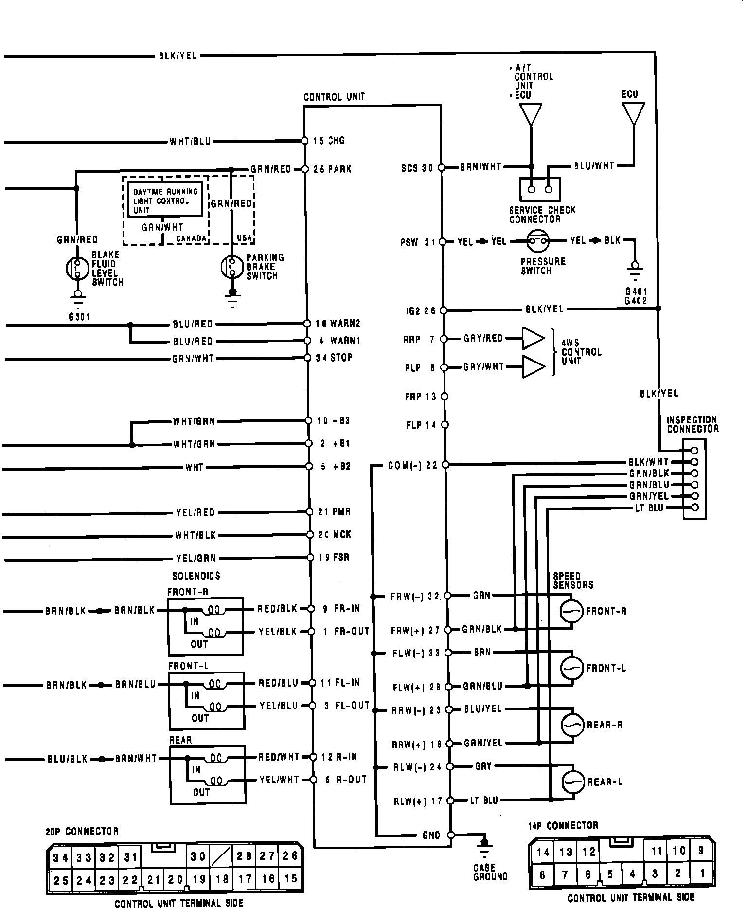 Fig. 14 ABS Wiring Circuit. 1992 Prelude W/4 Wheel Steering (Part 1 Of 2):