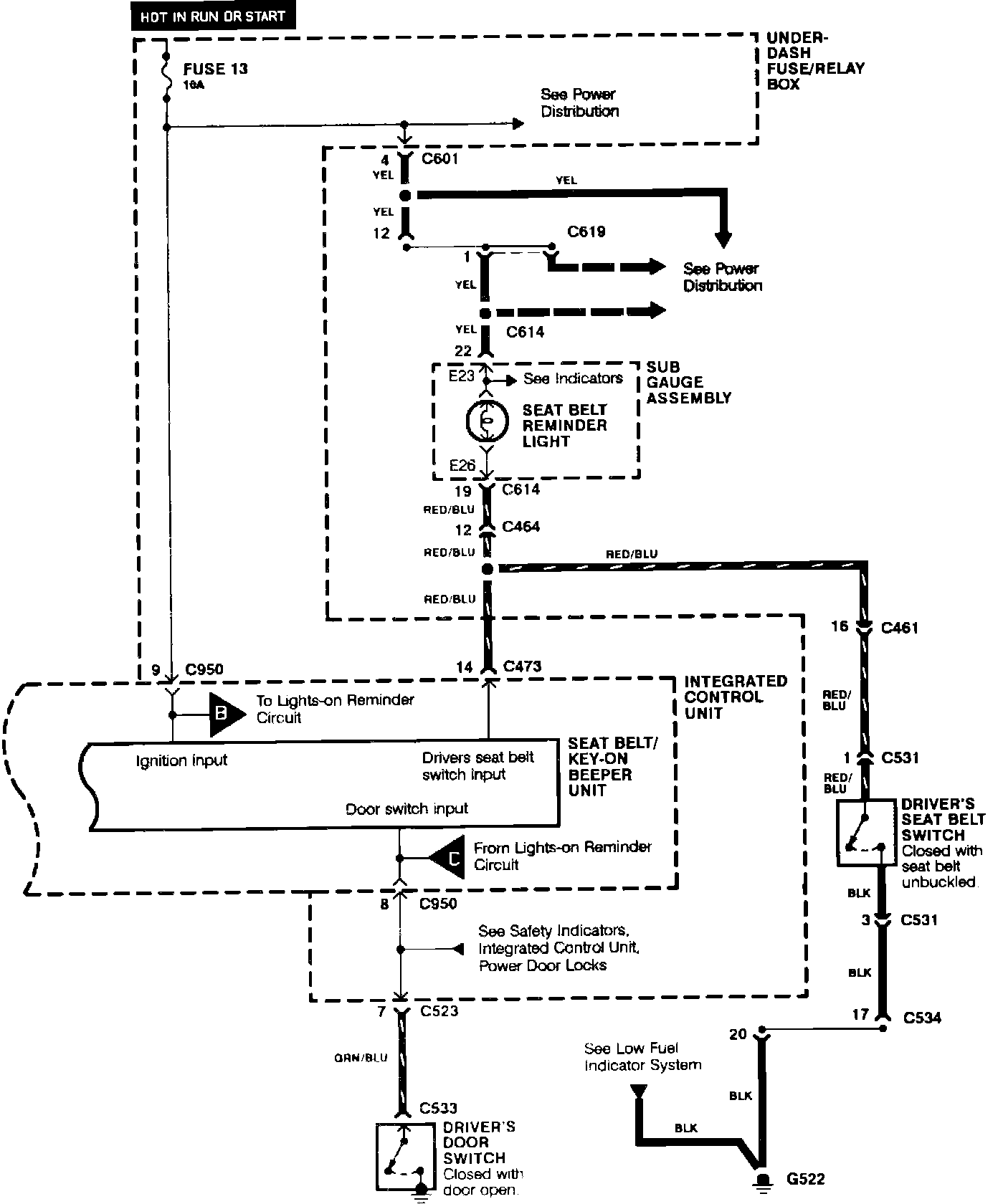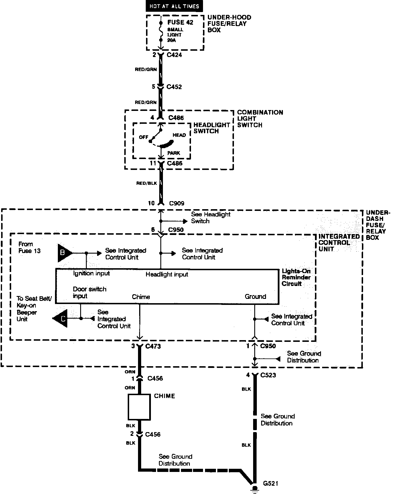 Seat Belt, Lights-on, And Igntion Key Reminders: