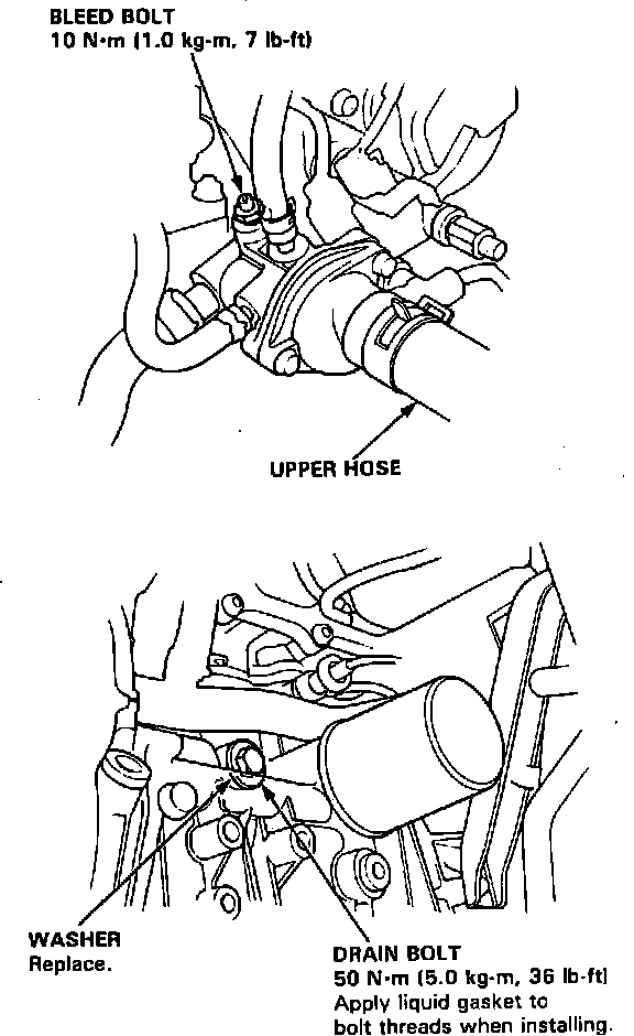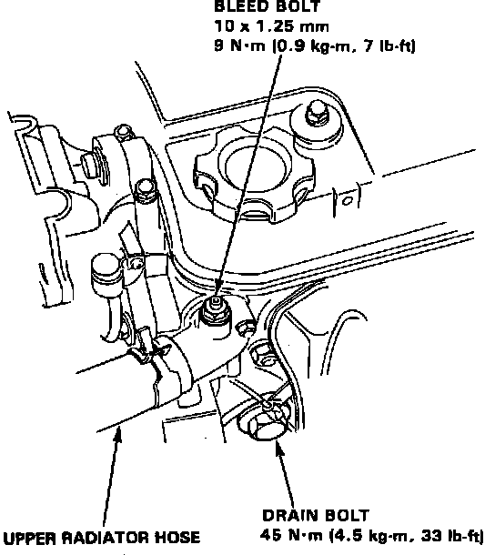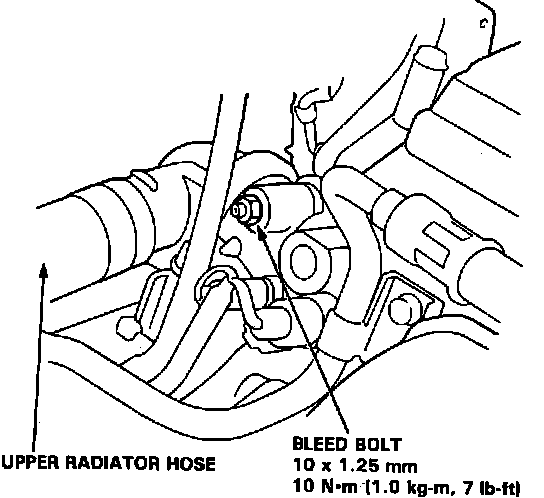 6. Tighten bleed bolt to specifications as soon as coolant starts to run out in a steady stream, without bubbles.