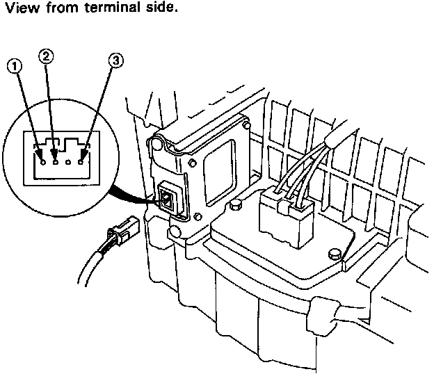 Recirculation Control Motor Test1. Connect battery power to the (1) terminal of the recirculation control motor connector and ground to the (2) and (3) terminals; the recirculation control motor should move smoothly.