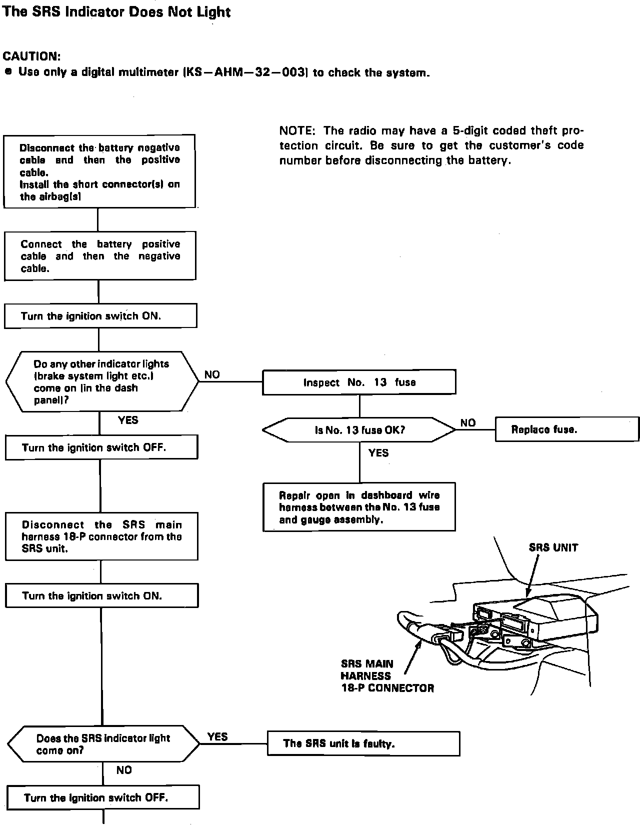 Fig. 15 SRS Indicator Light Will Not Light (Part 1 Of 4):