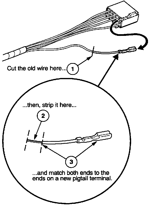 3. Select a pigtail terminal that matches the original wire at both ends (same kind of terminal and same diameter bare wire).