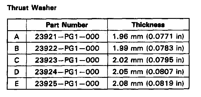 2. If the clearance exceeds the standard, select the appropriate thrust washer for the correct clearance from the chart above.