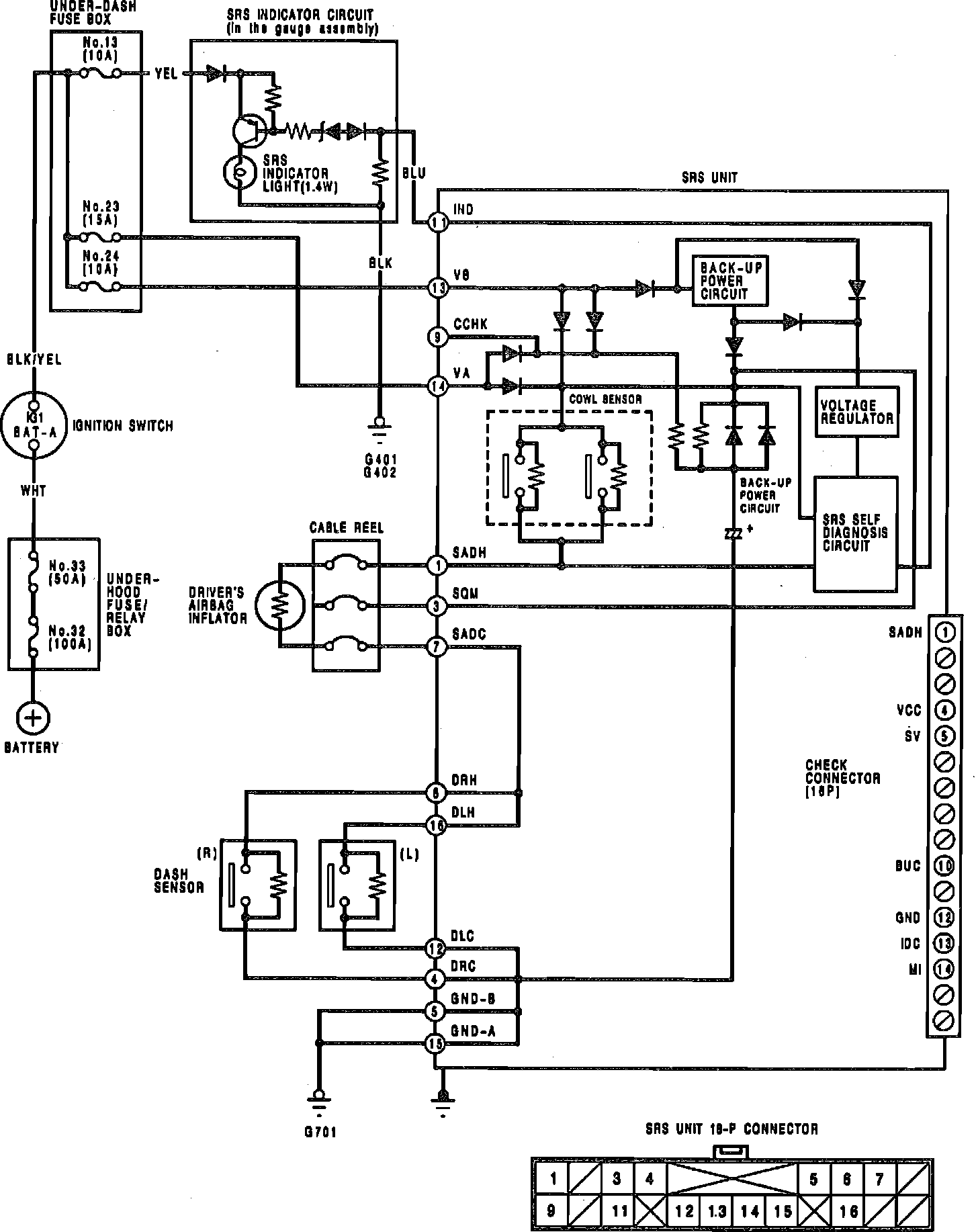Fig. 8 SRS System Circuit Wiring Diagram: