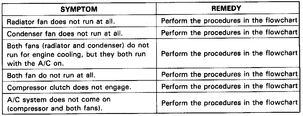 A/C Troubleshooting Reference Chart- Any abnormality must be corrected before continuing the test.