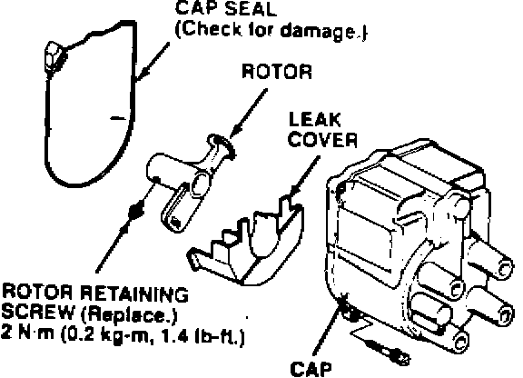4. Remove the distributor cap, cap seal, leak cover, and rotor.