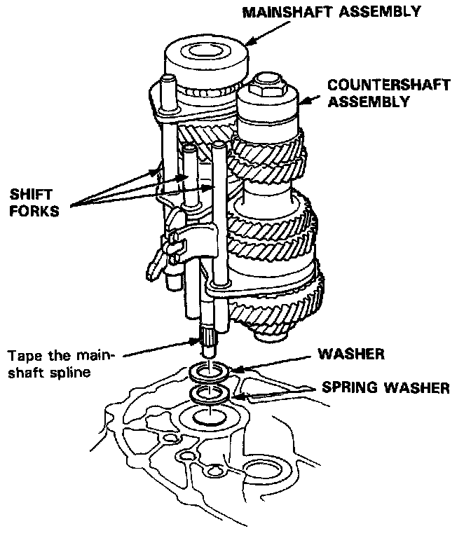 NOTE: Tape the mainshaft spline before removing the mainshaft and countershaft assemblies.