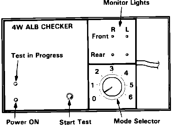 5. With the transmission in neutral, rotate each wheel briskly (one revolution per second) by hand, and confirm that its respective monitor light on the checker blinks as the wheel rotates.