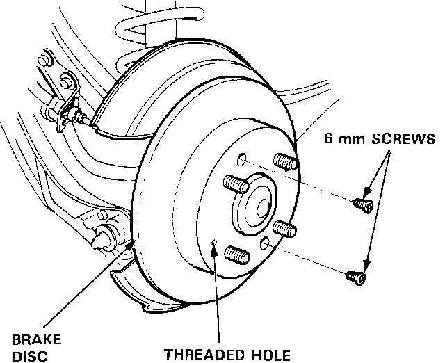 NOTE: If the brake disc is difficult to remove, install 8 mm bolts into the threaded holes and tighten them.