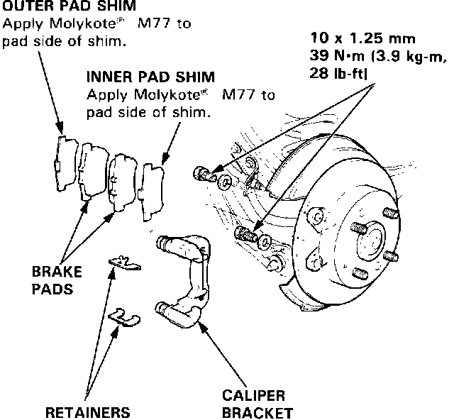 4. Remove the pad shims and pad retainers.