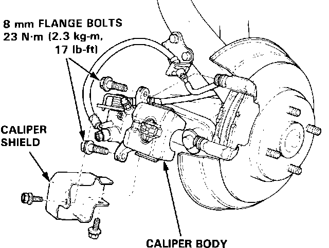 19. Install the caliper body and caliper shield.