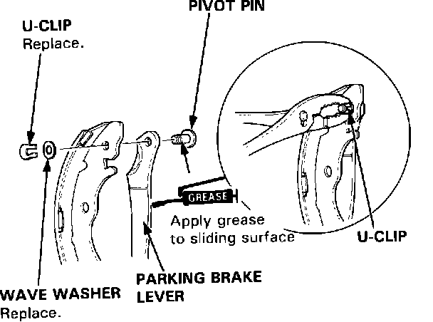 1. Apply brake cylinder grease to the sliding surface of the pivot pin, and insert the pin into the brake shoe.Parking Brake Lever Installation: