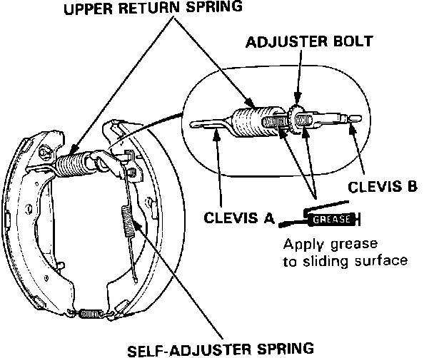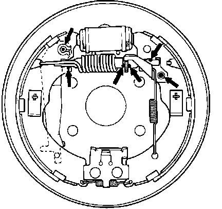 ^ Contaminated brake linings reduce stopping power. Keep grease or oil off the brake linings. Wipe any excess grease off the parts.