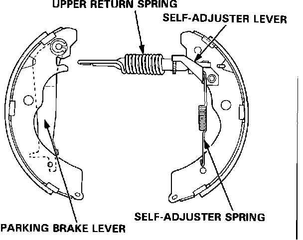 6. Remove the upper return spring, self-adjuster lever and self-adjuster spring, and separate the brake shoes.