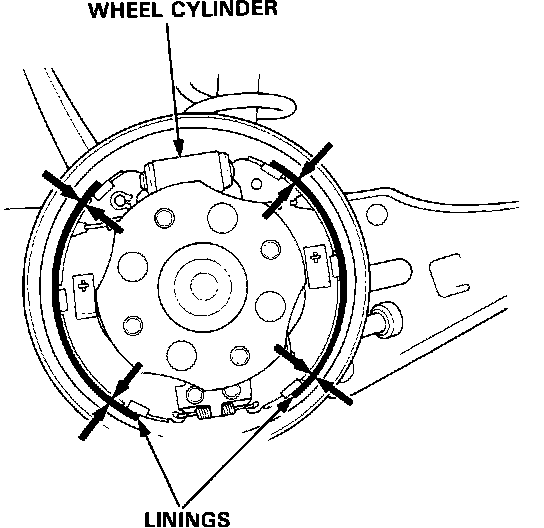 5. Inspect the brake linings for cracking, glazing, wear or contamination.