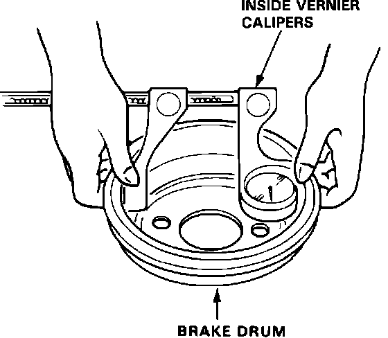 8. Measure inside diameter of brake drum using inside vernier calipers.